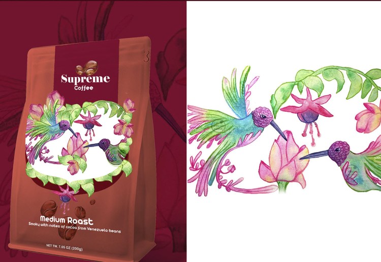Rediseñe un logotipo que transmitiera la calidad premium del producto y fuese moderno, a su vez propuse diseños que evocaran momentos especiales y conexión con la naturaleza , el momento del amanecer donde se disfruta un buen café y por supuesto ambientado en un paisaje caribeño. La ilustración final transmite esos momentos, y se potencia con el entorno natural y aves como colibríes que representan el momento presente para darle fuerza a esa percepción.